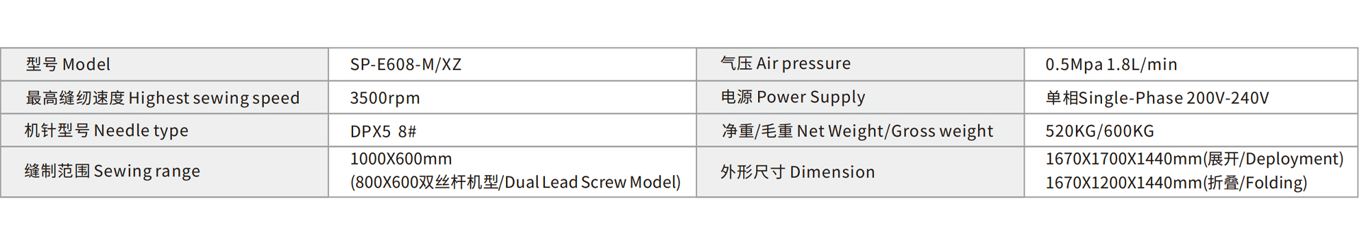 Y轴范围600mm,X轴⾏程1000mm,满⾜超⼤⾯料缝纫需求, 还可定制X向模组。