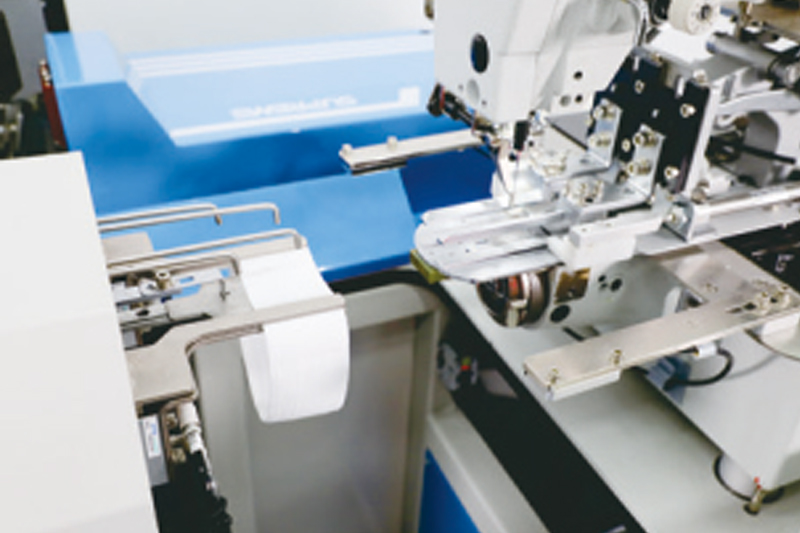 在橡筋对接口错位时自动纠正,确保边缘接口处无误差缝纫。