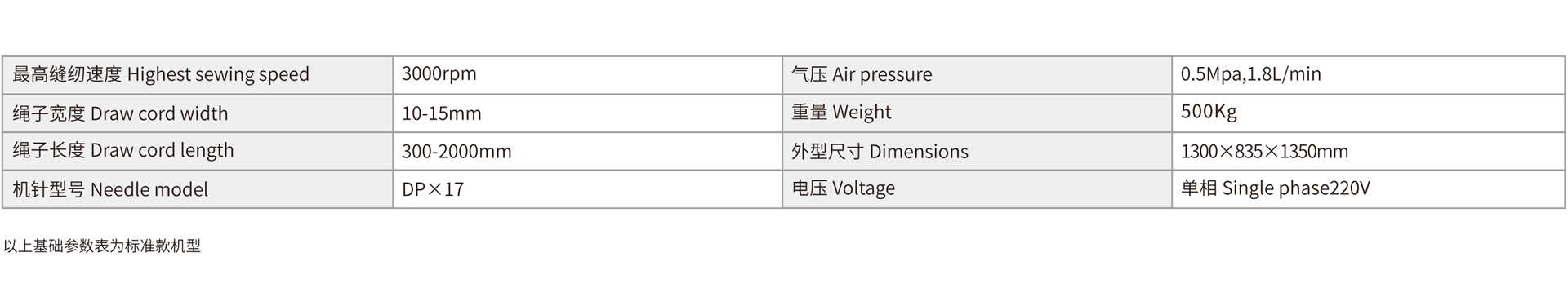 适用于风帽衬、运动休闲服饰类,腰绳及帽绳的车缝。