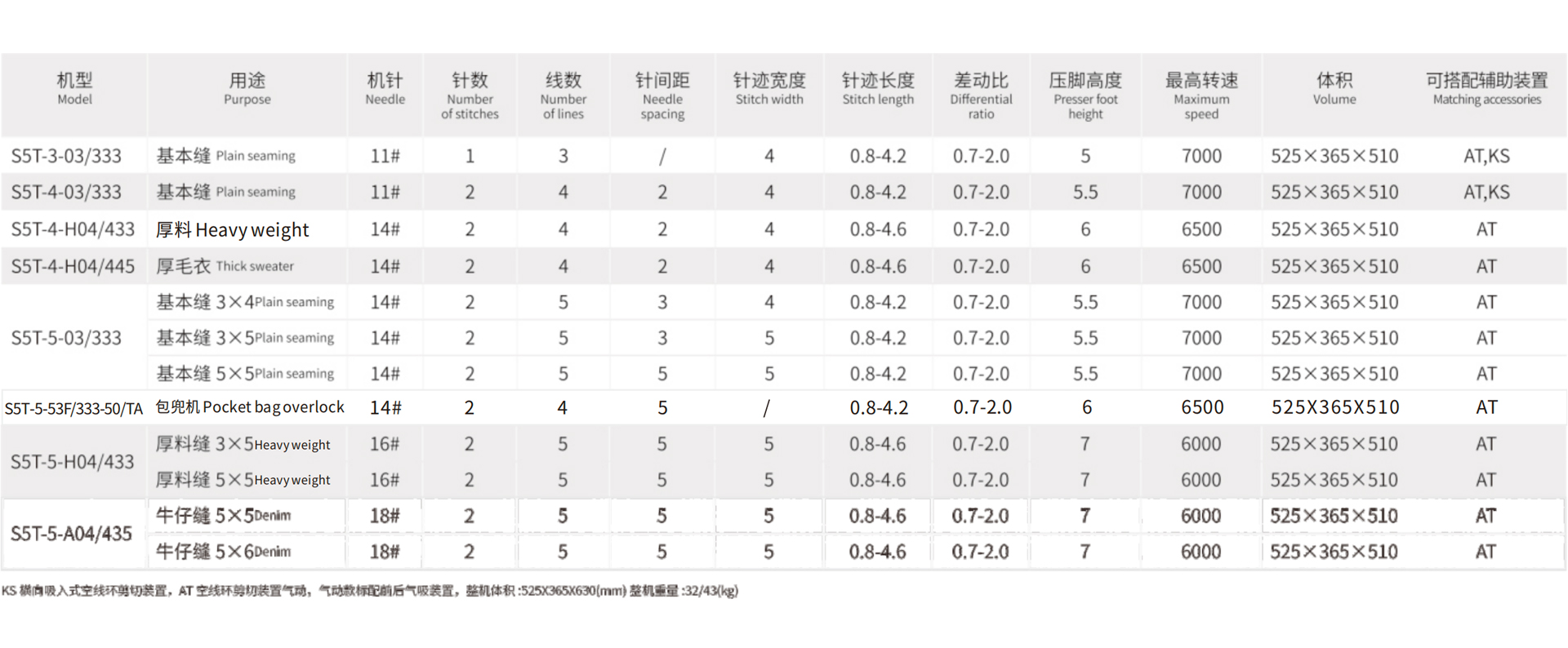 SP-S5T series 上下差动送布智能超⾼速包缝机