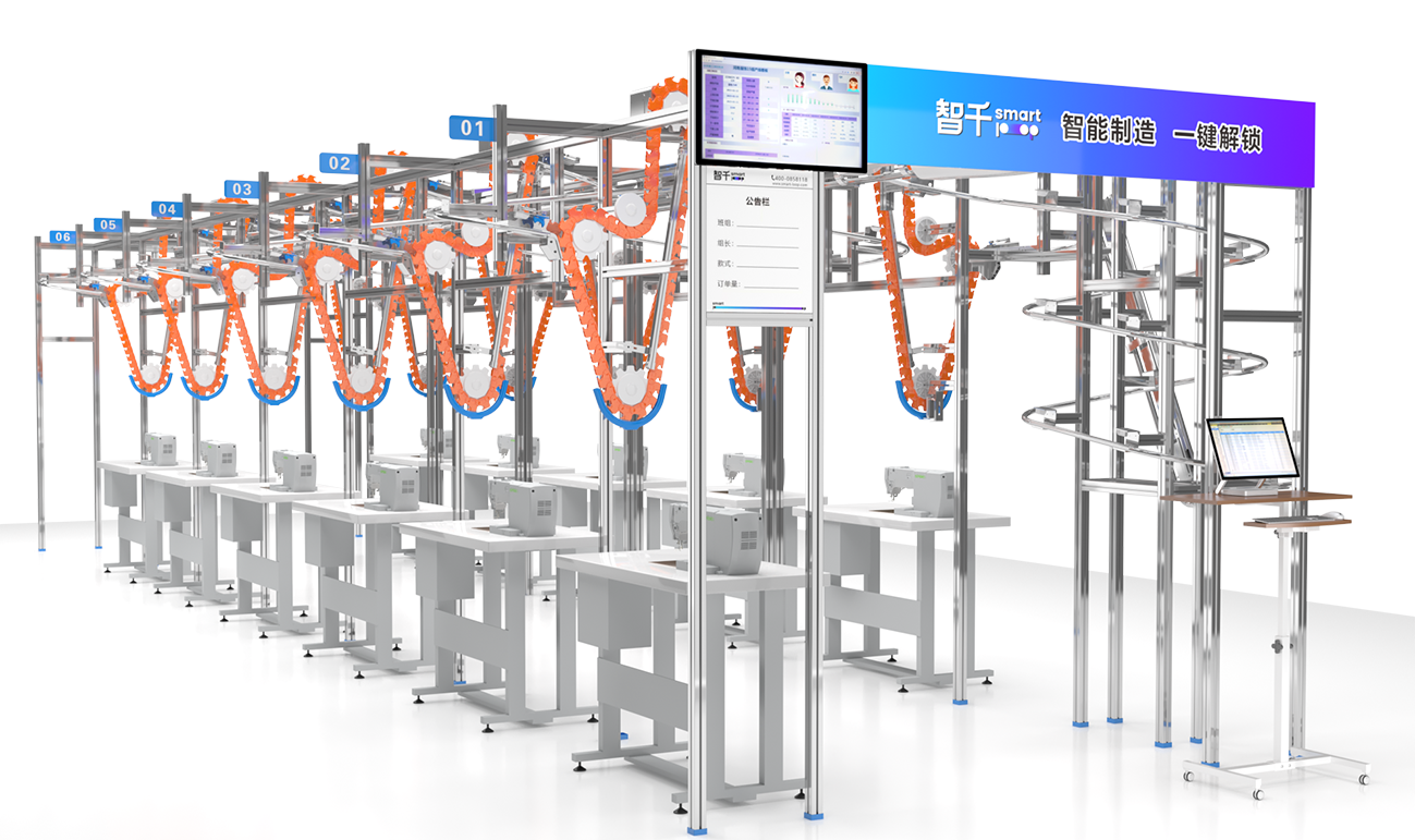 通过智能吊挂系统和柔性针车线,实现缝制生产线的自动化、信息化和智能化,解决传统生产线的效率瓶颈和管理难题