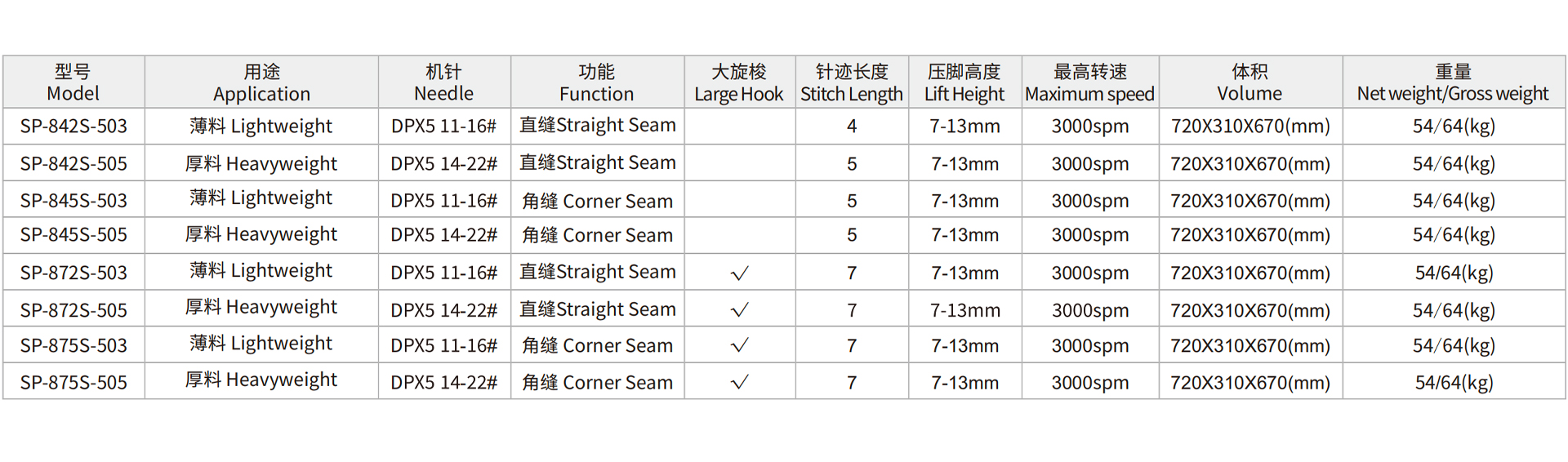 步进电机控制倒缝跟针距,实现缝制多样化、针距控制更精准、实现前 后锁针、重针率⾼、加密缝短线头、倒缝静声等等。