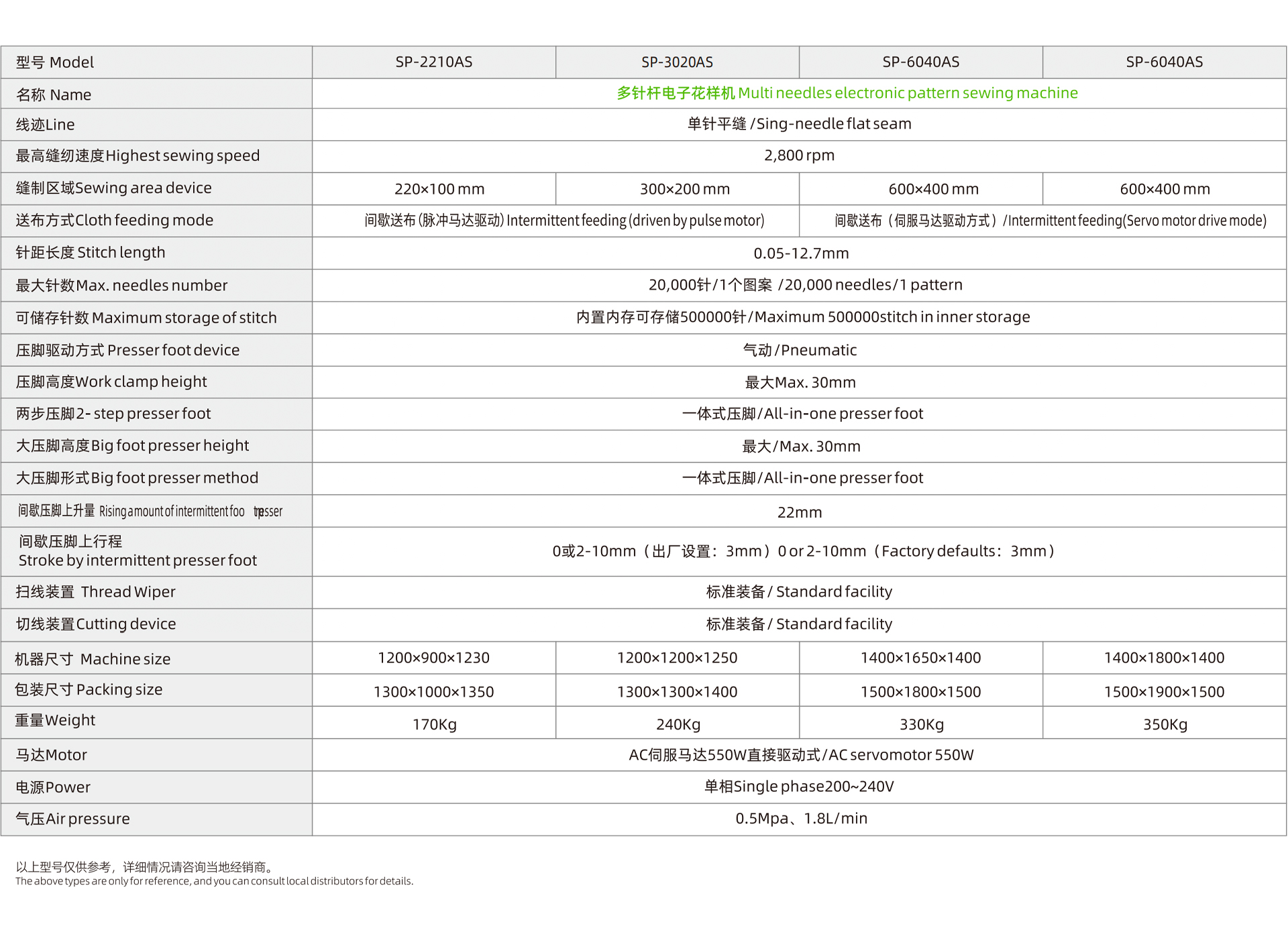 SP-2210AS-H/DN双针杆 SP-3020AS-H/DN双针杆 SP-6040AS-H/DN双针杆 SP-6040AS-H/TN三针杆 电子花样机