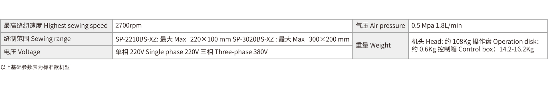 细嘴加⻓型电脑花样机应⽤在筒式特殊⾯料的加⼯,例如:⾼筒靴、箱包、 ⽜仔裤等缝制。